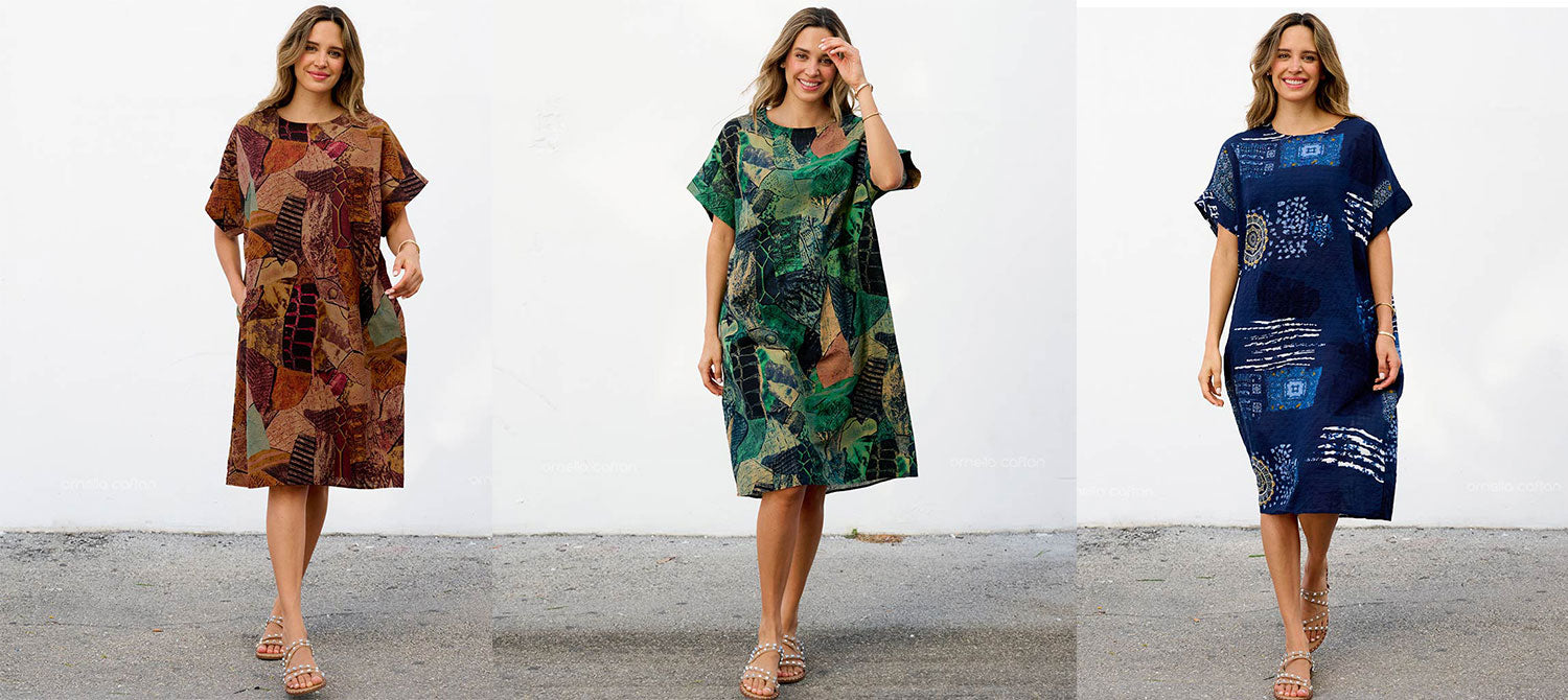 With their soft and smooth fabric, their ample and airy cut, these caftans fit and flatter all figures.